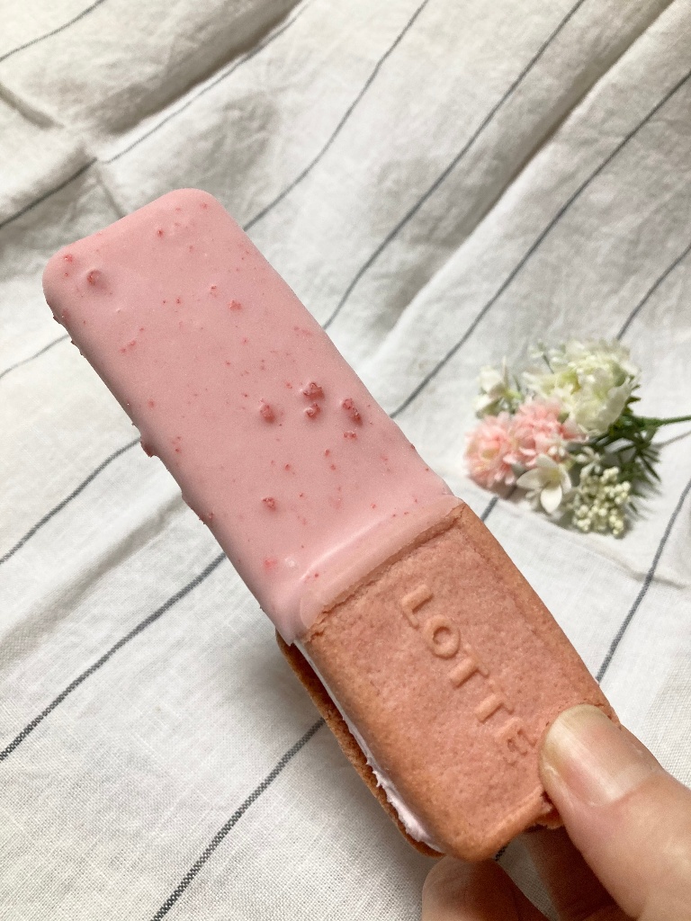 パッケージのピンクがまず可愛いいちごが好きでピンクも癒しの色味なのでどうしたって手がのびる。チョココーティングのいちご味アイスにビスケットサンドまでくっついていて小さめながら盛りだくさんな感じです。チョコはパリパリ食感が楽しくていちごアイスは固くなくクリーミーな感じで甘酸っぱい味が口の中に広がって美味しい。サクサクのビスケットサンド部分も満足感があって良いです。出典:きぃきぃさんのクチコミ