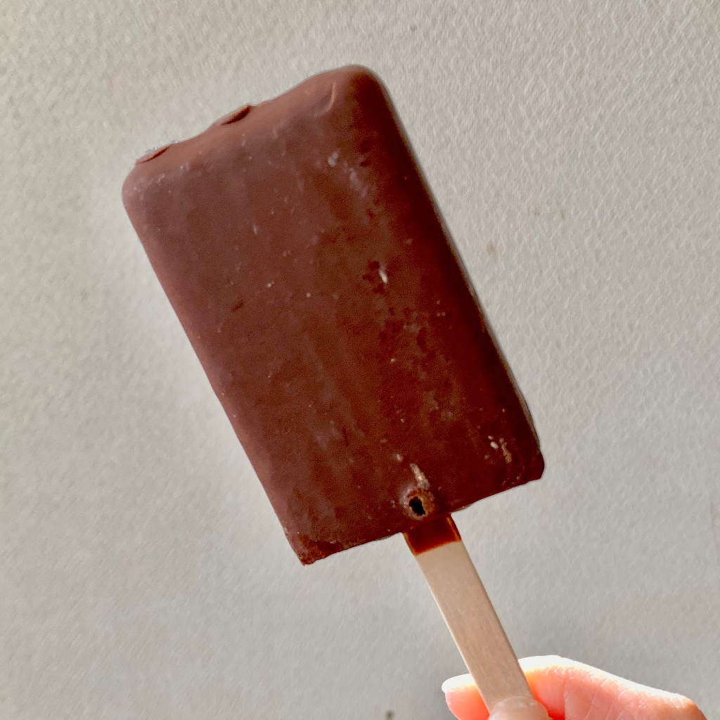 ココアクッキーと生チョコをアイスに練り込むことで、ガトーショコラのような濃密食感が楽しめるアイスバーです♪