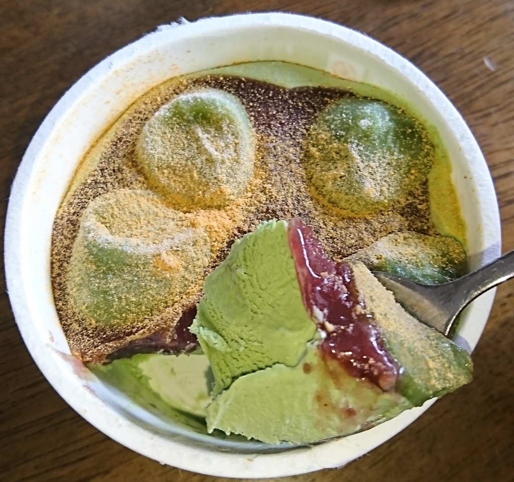 春といえば桜フレーバーが定番ですがよもぎも良い!とおもえたアイスでした(^^)表面のきなこは量は少なめですが香りがよく欠かせない存在です。おもち、餡子、よもぎアイスの組み合わせが和菓子とアイスのいいとこ取りという感じで、よもぎの香りが引き立っていてとてもおいしかったです。おもちがちょっとわらび餅っぽい味な気がしたのですがそれもまたよく合ってました。出典:すじこんさんのクチコミ