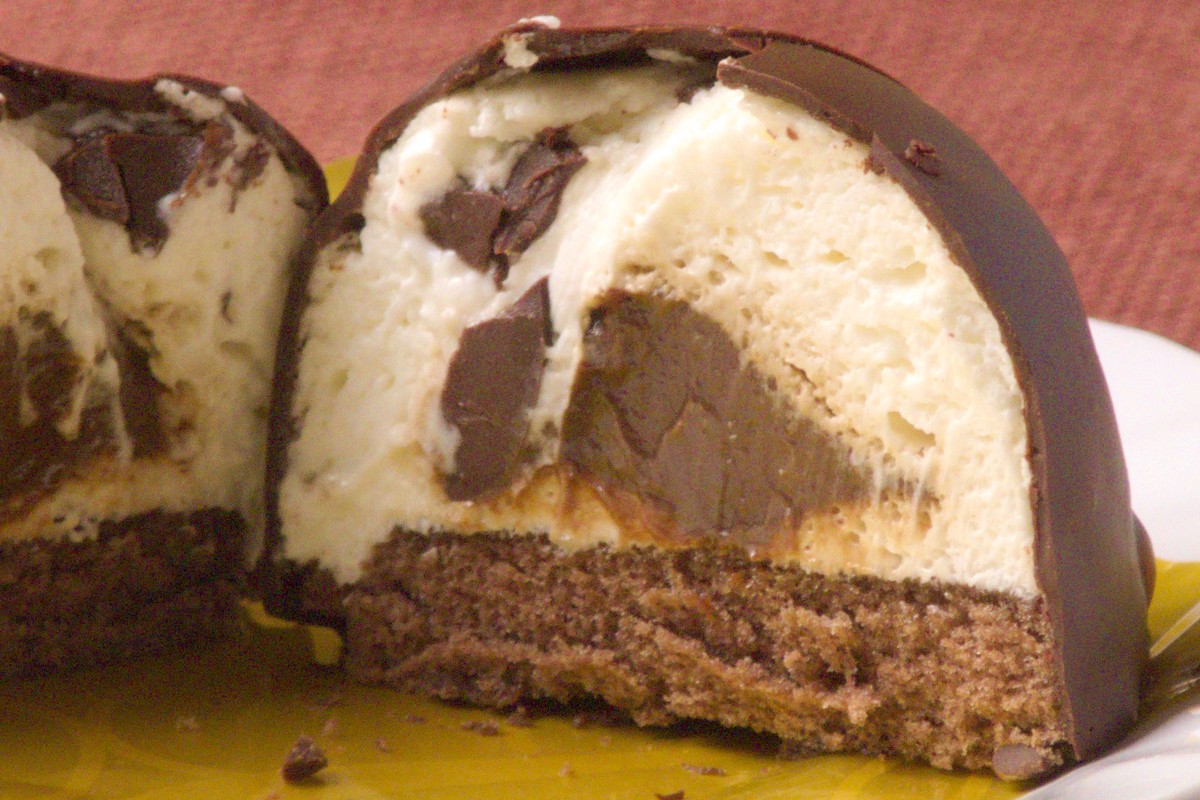チョコでコーティングされた、ドーム型のケーキです。