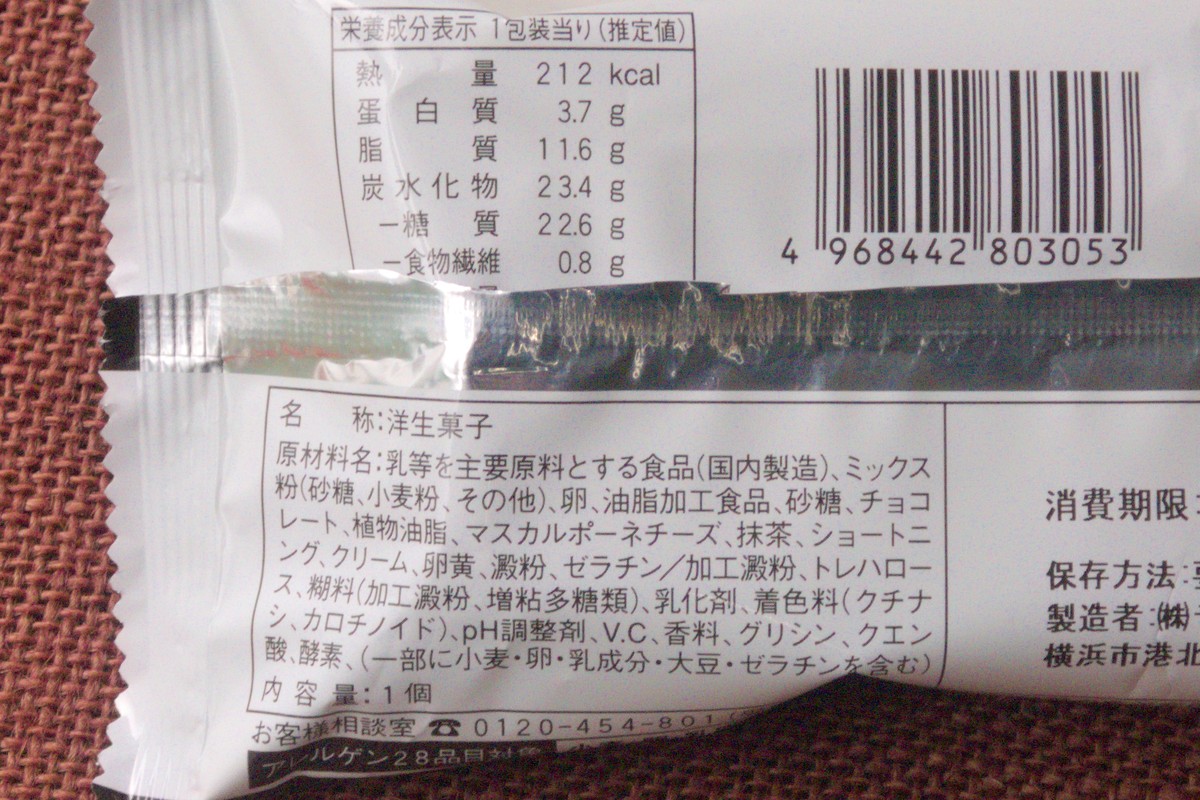 抹茶クレープ生地で抹茶とマスカルポーネを包んであります。