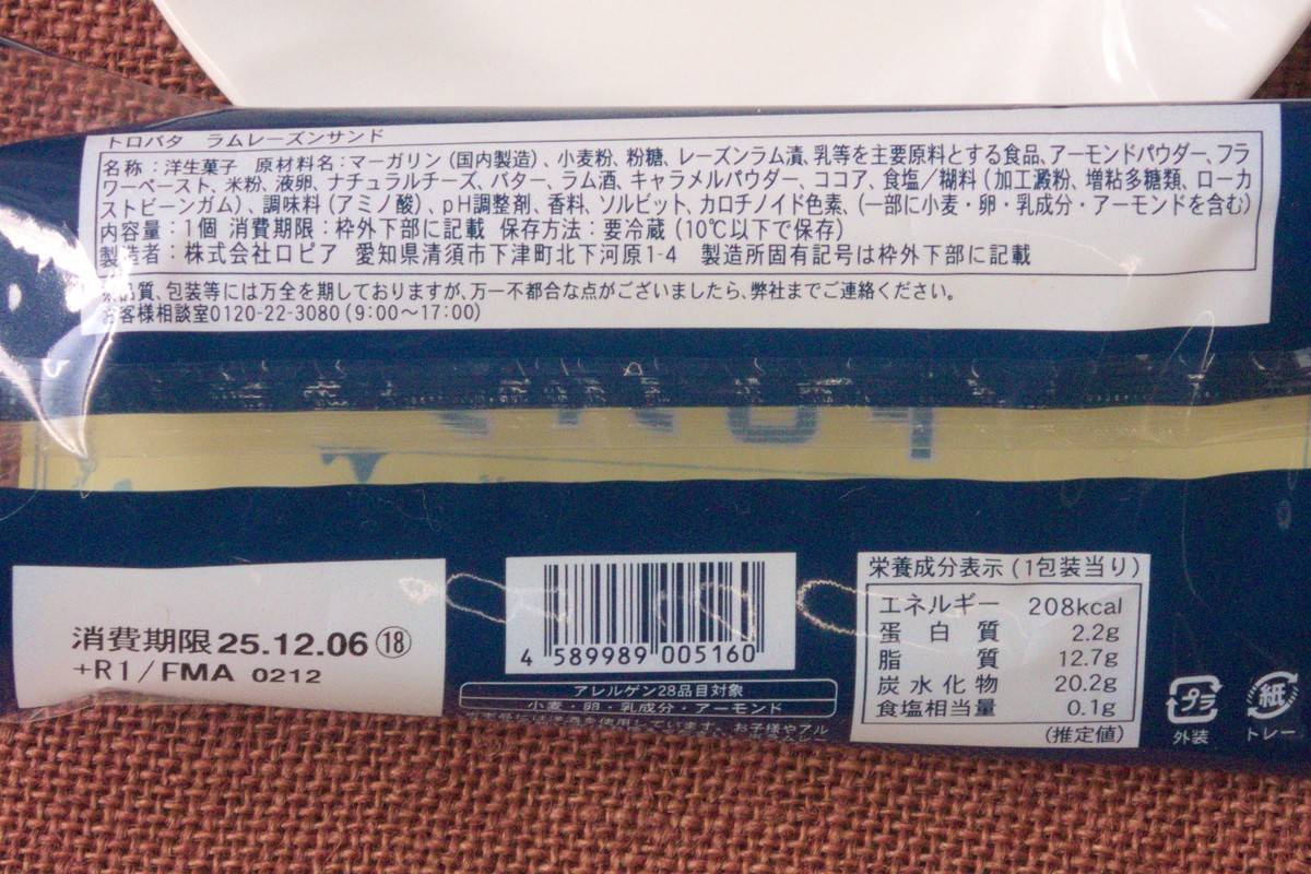一つめは、ランキング6位よりファミリーマート「トロバタ ラムレーズンサンド」。