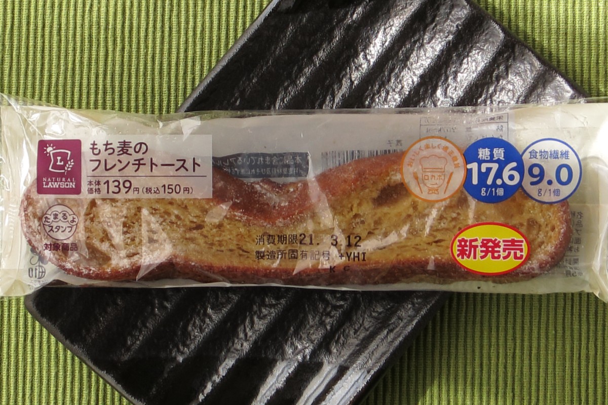 ローソンはカスタード味のフレンチトースト、しみしみもっちりもち麦生地。