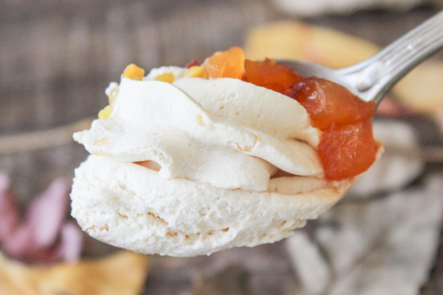 ムースとクリームは、キャラメルがふんわりと香り、ビターな味わいです。甘酸っぱいりんごとよく合います!