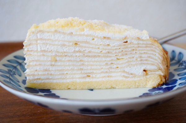 白く艶やかな光沢のあるホイップクリーム(ミルククリーム)が波打って四角く入っている。