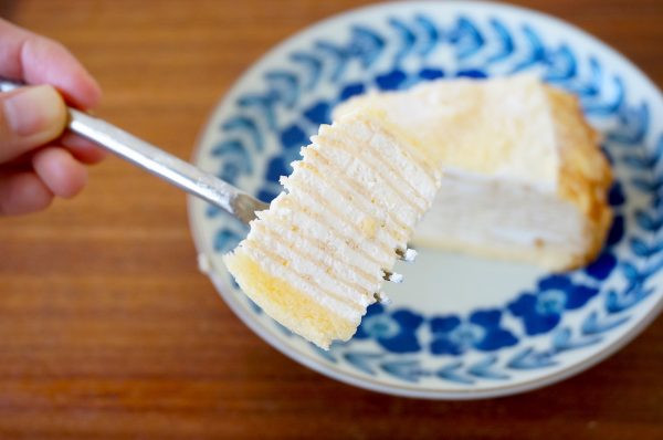 少しチーズ感のあるミルキーで甘い香ばしい匂い。生地の表面は全体がカリカサッと焼けて少し硬くなり、黒っぽく焦げたところはカリカリ感が強い。上面の高いところは砂糖の焦げた質感でよりカリカリとしている。中の生地は特に変化は無さそう。ホイップは生地から垂れたりはしない程度に溶けて緩くなり、ツヤっと光沢も出ている。