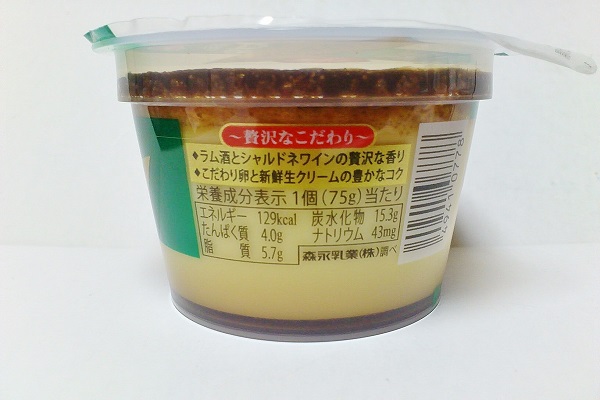 ラム酒が使用されたプリンで、さらにシャルドネワインがプラスされているとのこと。
