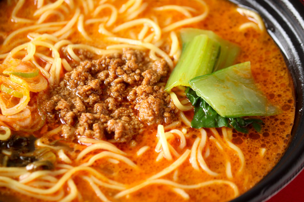 スープは辣油の辛さが程よくきいており、モチモチとした麺との絡みが抜群です!豚肉みその甘辛さ、炒り胡麻の香ばしい風味が後から追いかけてきます。