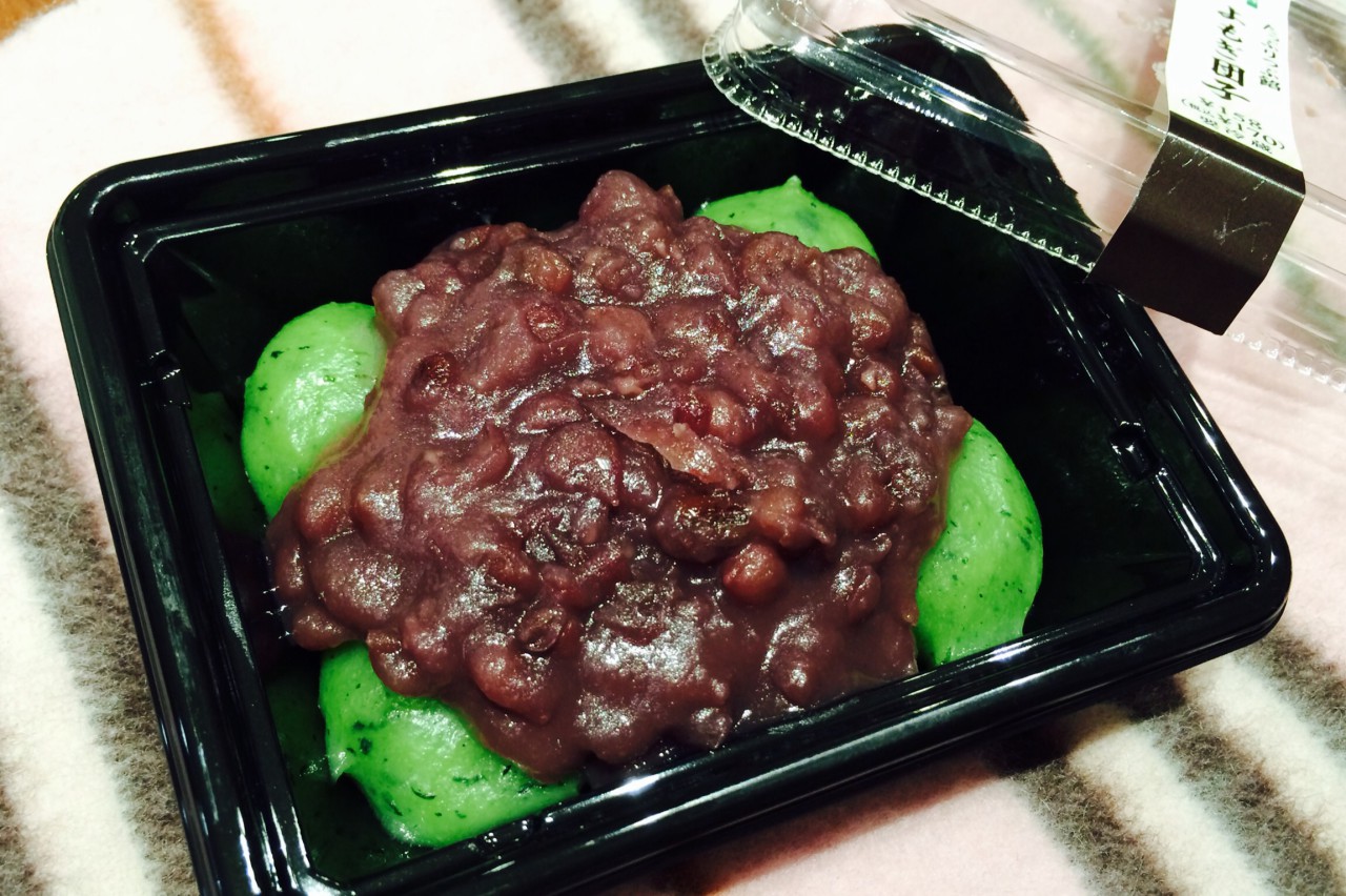 セブンイレブンに立ち寄りると、春を感じさせる季節の和菓子が並んでいたので、新商品の「たっぷりつぶ餡 よもぎ団子」を買ってきました。