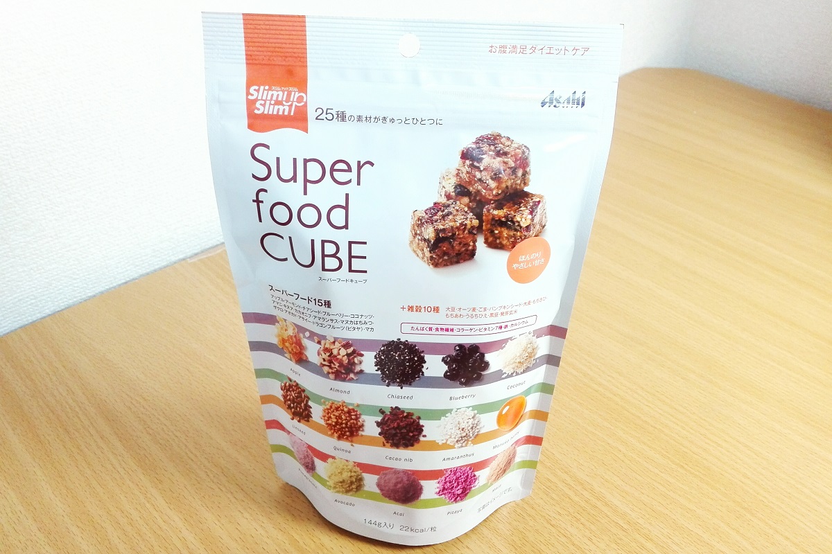アサヒフード「スリムアップスリム」シリーズの新商品「スリムアップスリム スーパーフードキューブ」です。