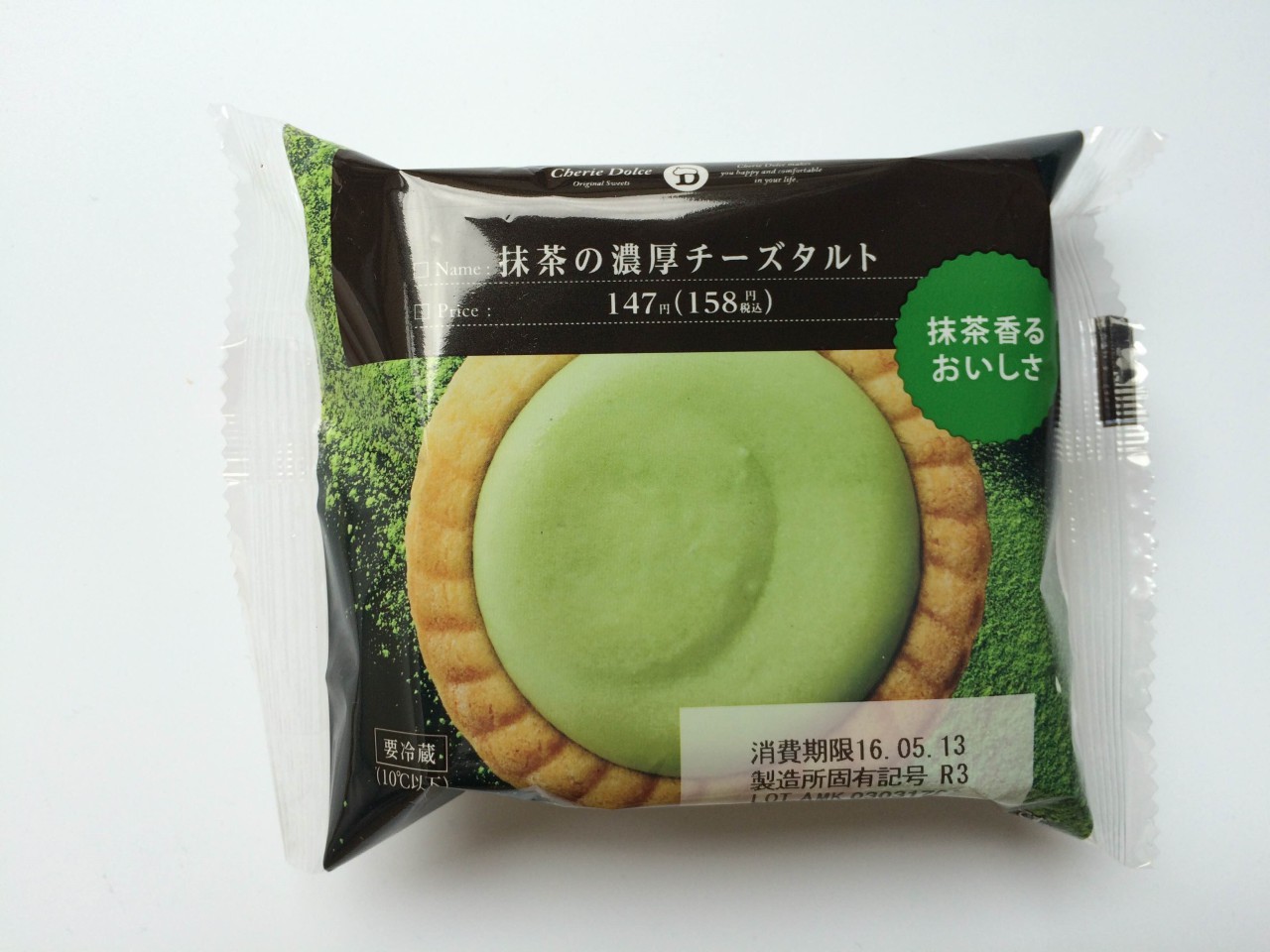 「抹茶の濃厚チーズタルト(税込み158円)」は、5月10日(火)本日よりサークルKサンクスにて販売開始。
