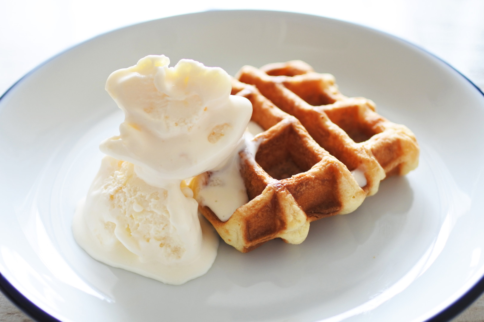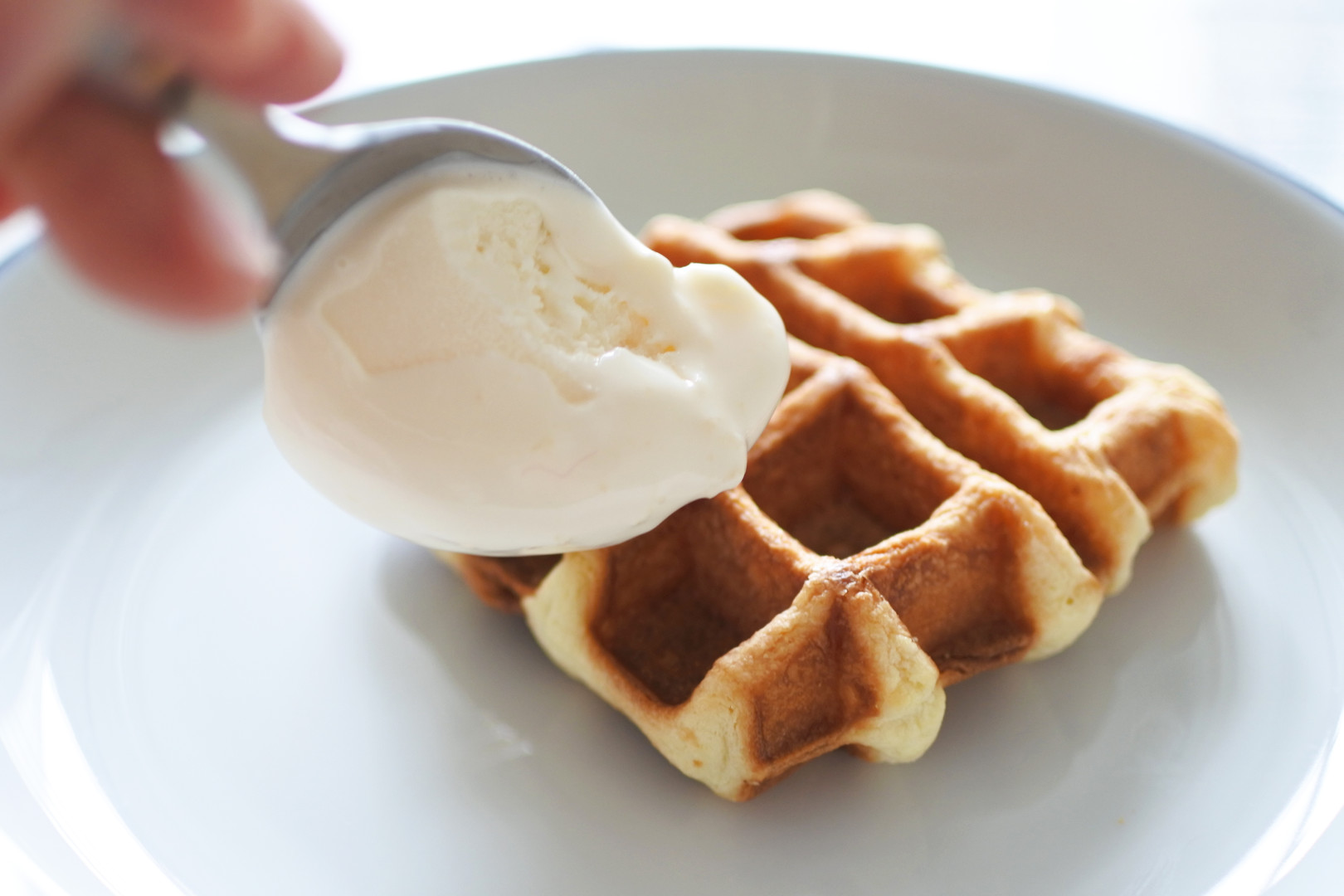 オーブンで軽く焼いたワッフルにアイスを・・・