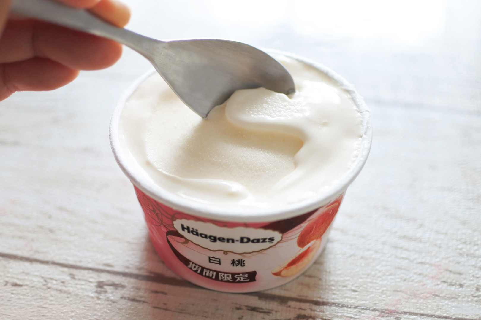 ハーゲンダッツの新作は、桃の爽やかな甘みと濃厚なミルク感がマッチした、夏にぴったりのアイスでした。