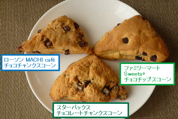 ゴツゴツしたスターバックス、シャープなローソン、ふっくらしたファミリーマートのスコーン