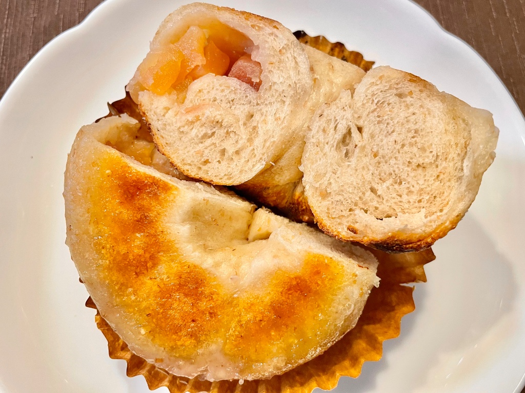 年単位でお久しぶり2回目の通販となってたSnuggleさん。日頃のストーリーズ募集はずーっと拝見していて、やっとお迎えできた11月。ミニベーグルのおまけもついていました(^^) (煮りんごとバターを包んでトップにお塩) 157g 冷蔵解凍 →しっかりめにトースト →冷凍庫 →半分は底面を上にして再度トースト 同梱されていたパンフレット通りのリベイク方法にして、半分は冷やして、もう半分は底面にバターがしみていたのでバター側を上にして追加トーストしま…続きを読む