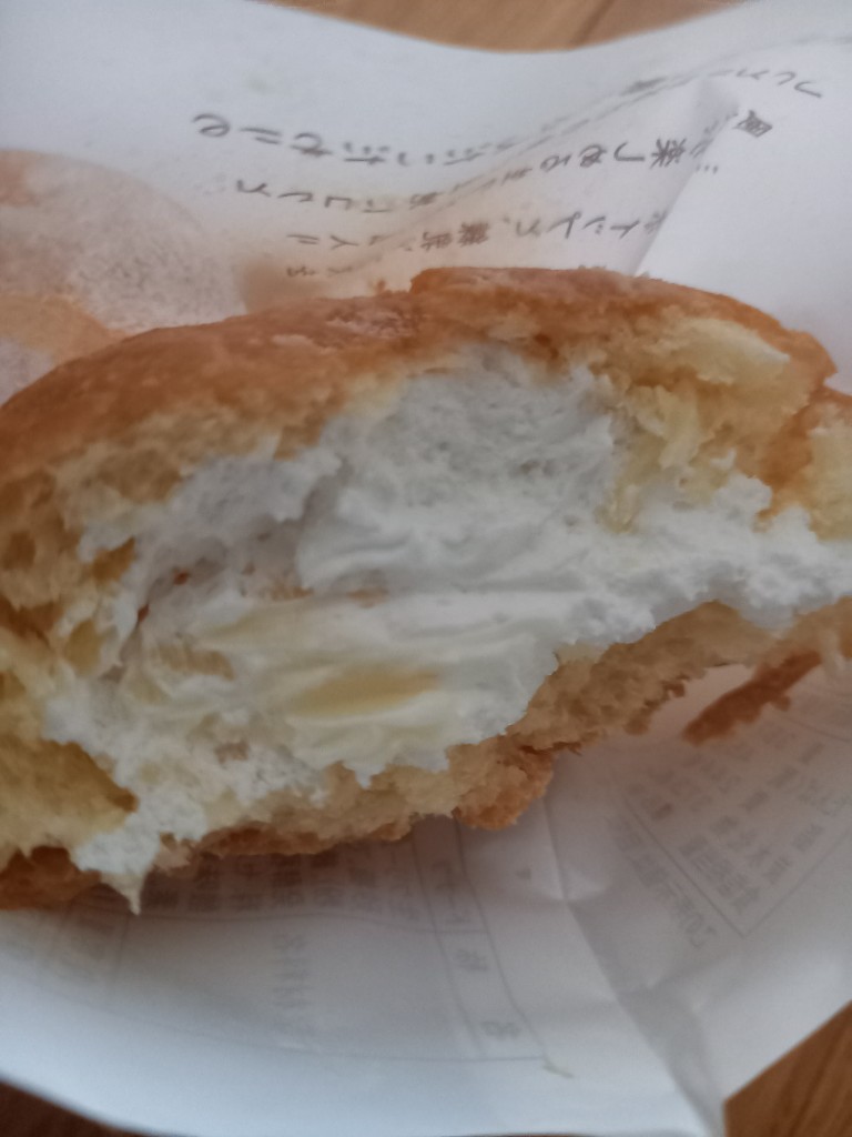 生地は油を纏っており、ザ・菓子パンドーナツという感じ。パサパサはしていませんが、生クリーム入りと言われるともっとしっとりを期待してしまいます。