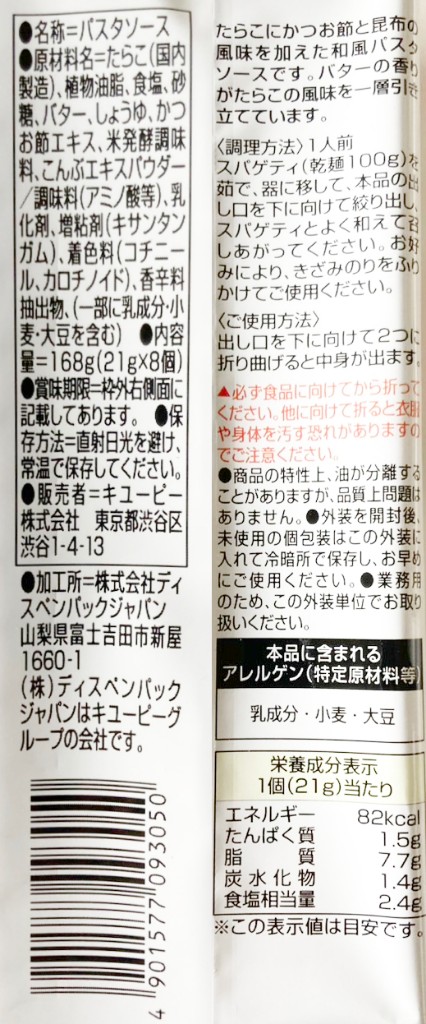 たらこ系パスタソースの定番ともいえる「エスビー 生風味たらこ」と比べると、こちらはコクも旨みもしょっぱさも格段に強め。たらこの風味も個性的で、少し生臭さを感じる方もいるかもしれません。