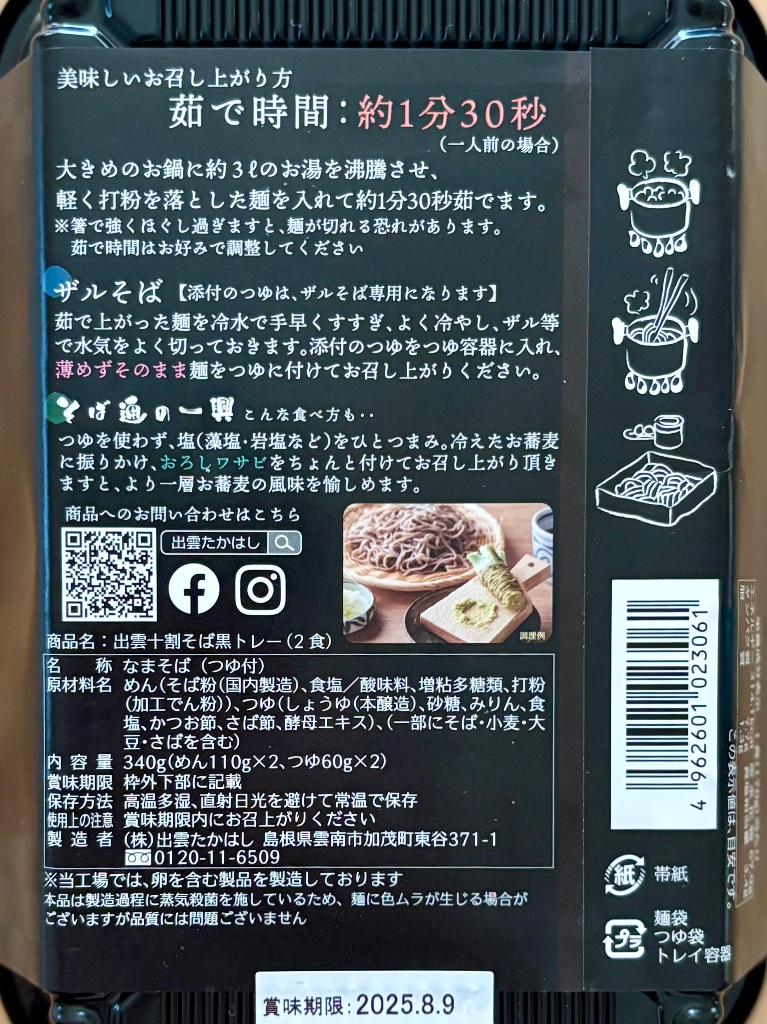 もぐナビホームへ > 米・麺・粉類 > 麺・生地・パスタ > 出雲たかはし 出雲十割そば黒トレー