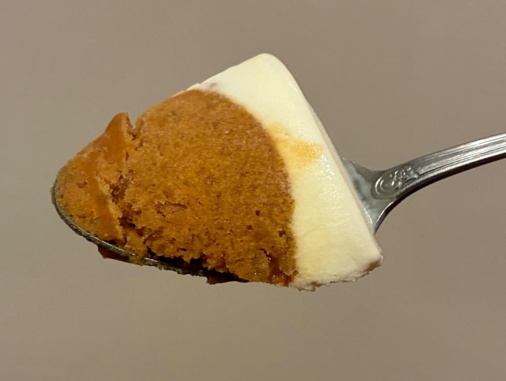軽やかなホイップアイスと、ほぐれやすいキャラメル氷の2層仕立て、センターにはとろりとした生キャラメルソースが入っています。