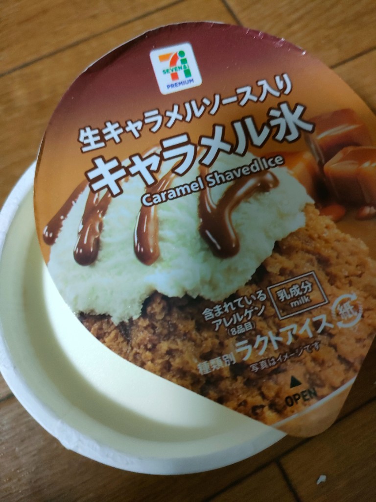 セブンイレブンで買った「セブン&アイ セブンプレミアム キャラメル氷」。