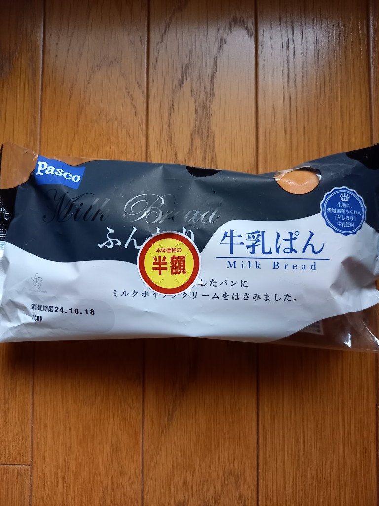 パスコの菓子パン。ふんわり牛乳ぱんです。