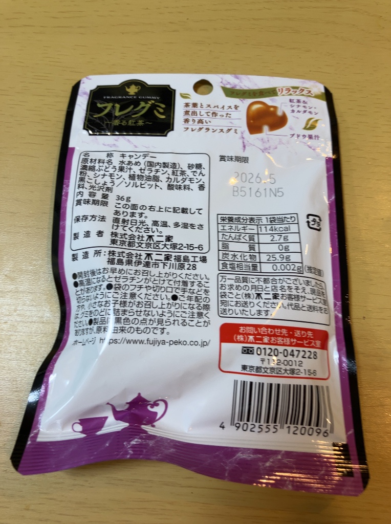 セブンイレブンで買った「不二家 フレグミ 〜香る紅茶〜 袋36g」。 ハート型をしたグミで、少しクセのある味わい。 スパイス入りなので、チャイっぽい風味をイメージしたのですが、少し違いましたね。 あとは、量が少ない割には、少し割高かな? ごちそうさまでした!... 続きを読む