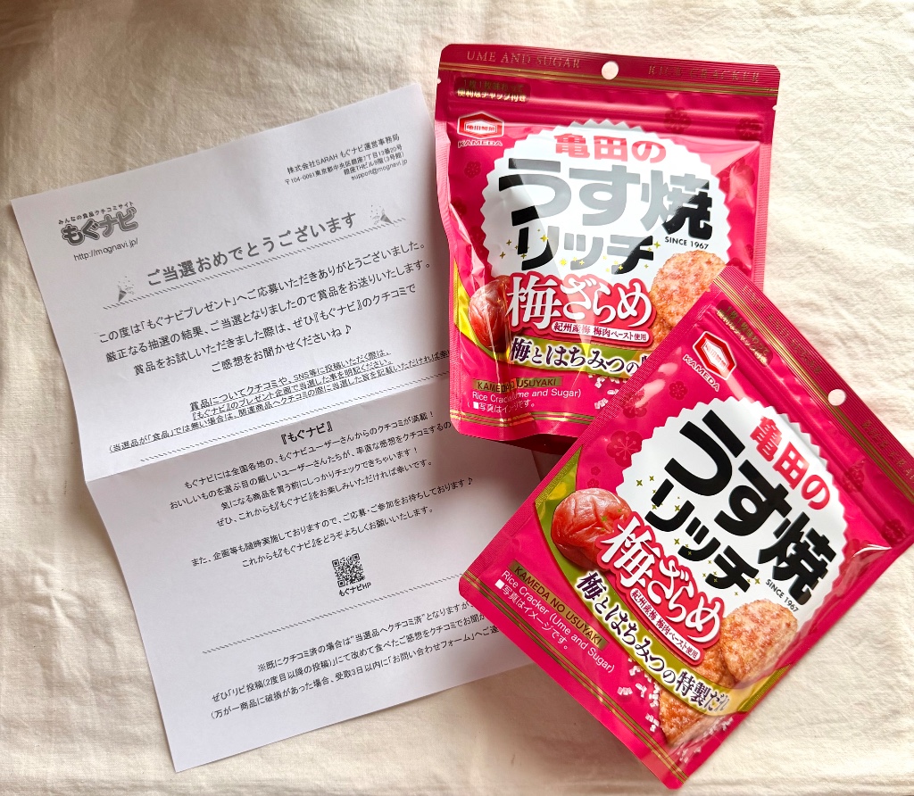 亀田製菓 亀田のうす焼リッチ 梅ざらめを頂きました。