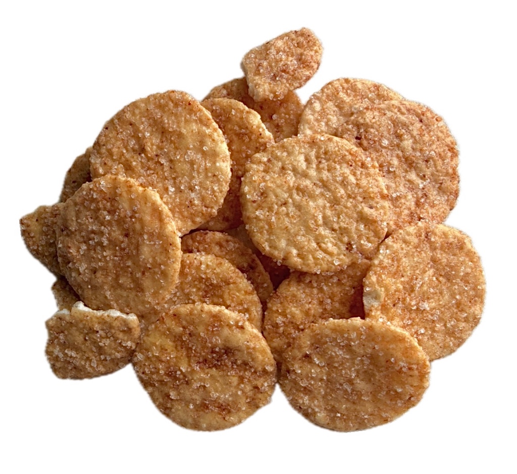 ザラメ付きでどちらかというと甘めの薄焼きおせんべいになります。