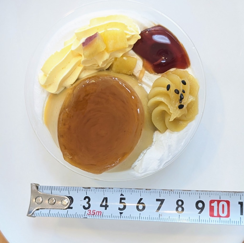 構成は、去年とだいたい同じで、栗のホイップがサツマイモのホイップに変わって、芋縛りのプリンアラモードになってました