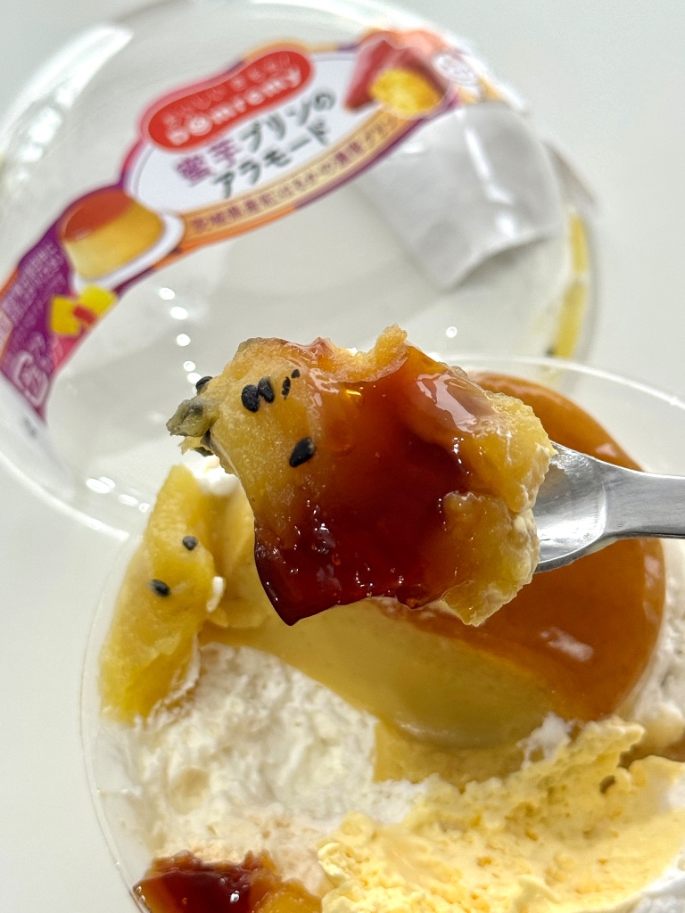 蜜とお芋の風味をたっぷり味わえるうえに、プリン生地も芋風味になっているためこの季節にぴったりな出来栄えになっていてとでも満足。