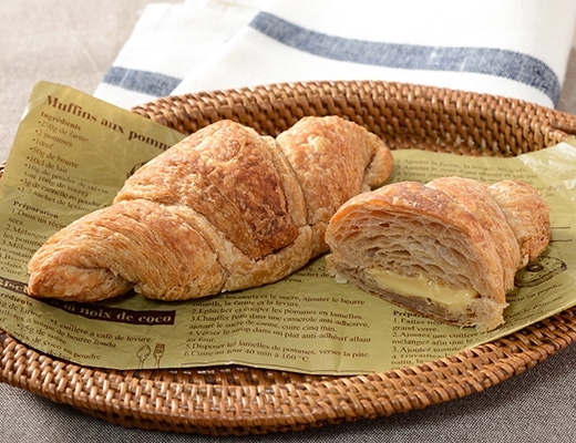 パンの耳とシナモンを混ぜ込んだクロワッサン生地に、黒蜜入りのカスタードクリームをサンドしました。