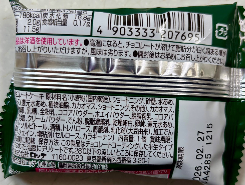 お味も甘すぎず、ほろほろ崩れるガトーショコラのよう。基本、チョコはパリパリが美味しいと思っていましたが、この食感と口溶けを楽しめると思うと、常温でも美味しいと思います。
