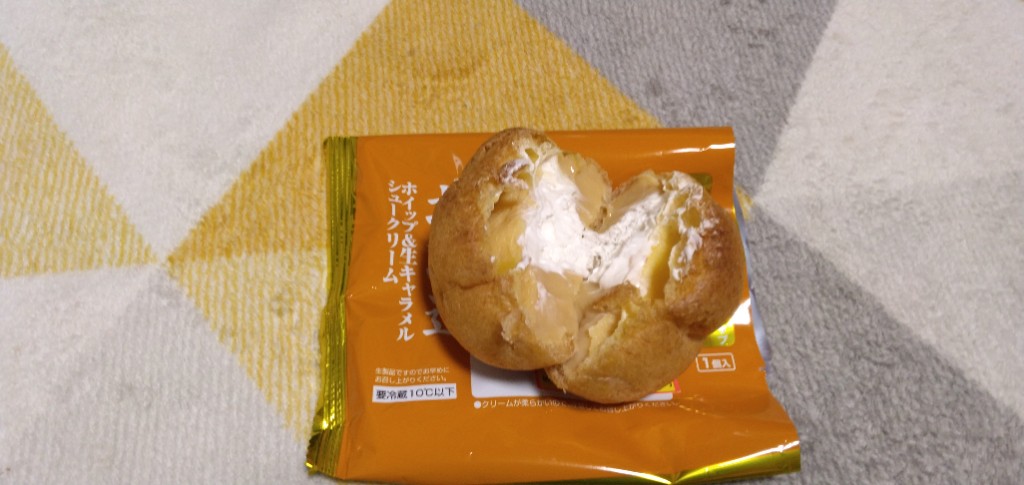 くしゅっとしたシュー生地にクリーミーなホイップと生キャラメルソース入りでこの生キャラメルソースが私好みでおいしかったです。