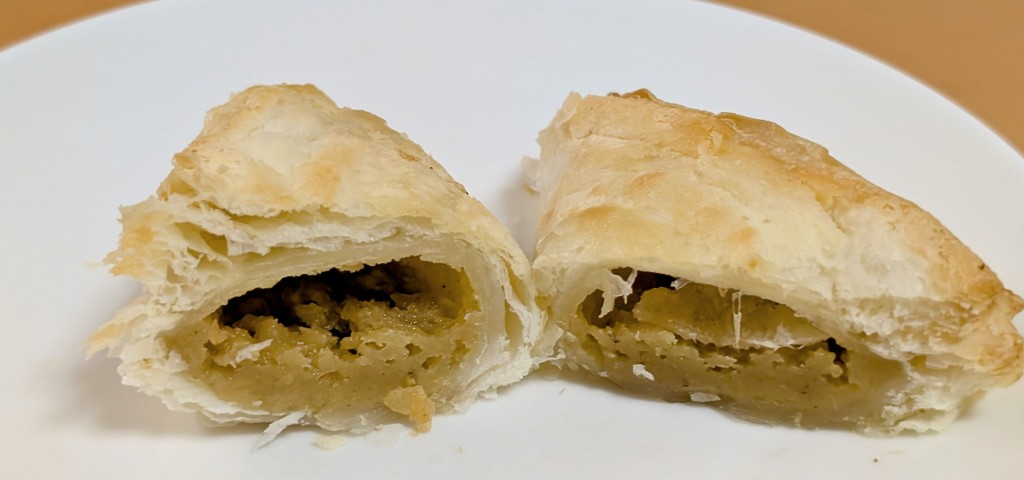 今週の新商品🍠 おさつが美味しすぎなパイ🍠焼いたら★6な美味しさでした✨️ 国産紅はるかを使用した三角おさつパイです。 とのこと🍀 321円(税込) 1個あたり177kcal レンチンのみでの調理もできますが レンチン→トーストで より美味しくなる セブンの冷凍パイです✨️ 🌸レンチンのみ 生地は 外側はしっとり、ふんわり 内側はしっとり、むっちり。 塩味があり マーガリンやバターの…続きを読む