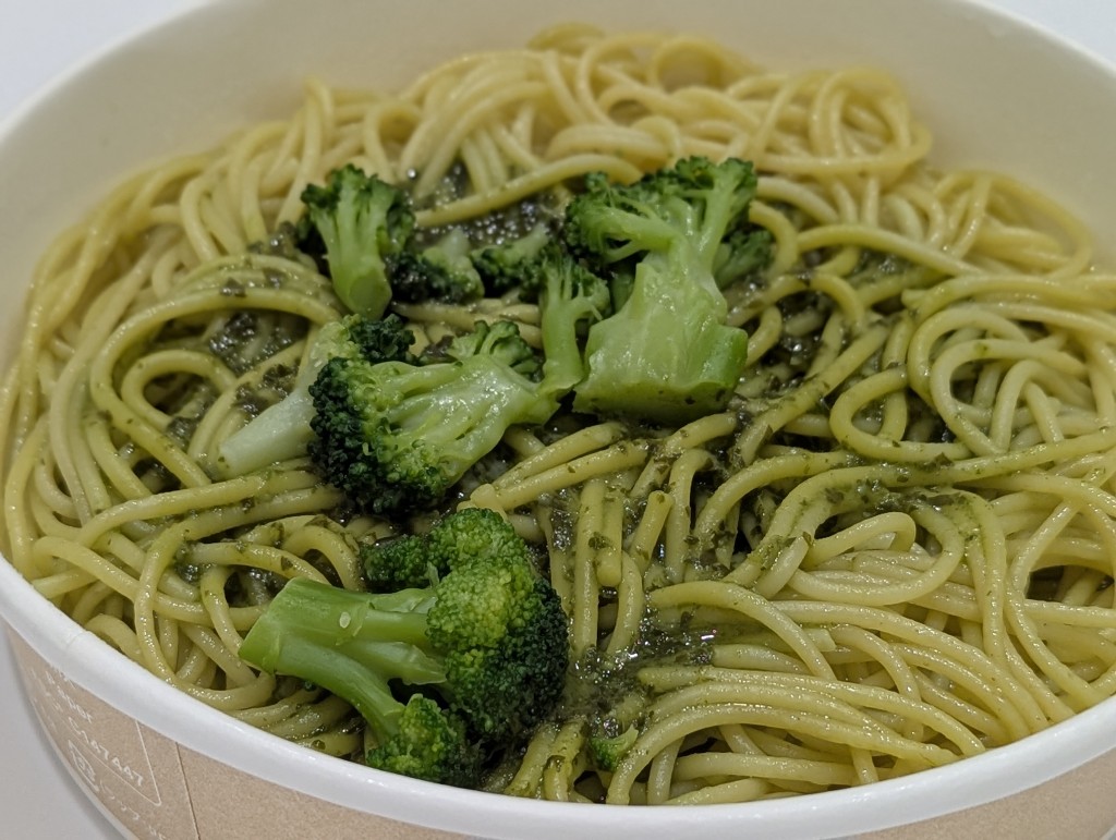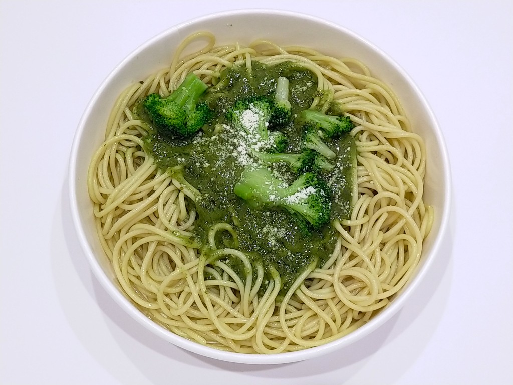 ジェノベーゼパスタにブロッコリーが乗っただけなんだけどバジル好きとしては魅力感じちゃうの。