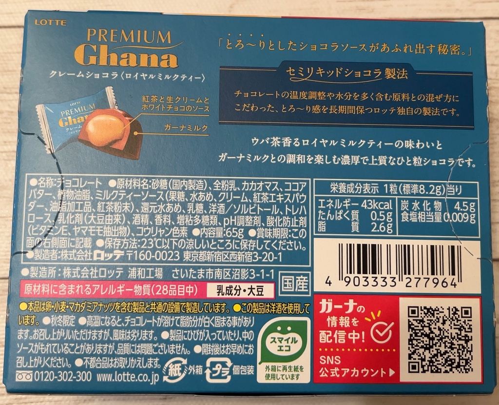 ・特許を取得したロッテ独自の「セミリキッドショコラ製法*」によって実現した、紅茶と生クリーム入りのとろ~りとしたショコラソースを、ガーナミルクで包み込みました。... 続きを読む