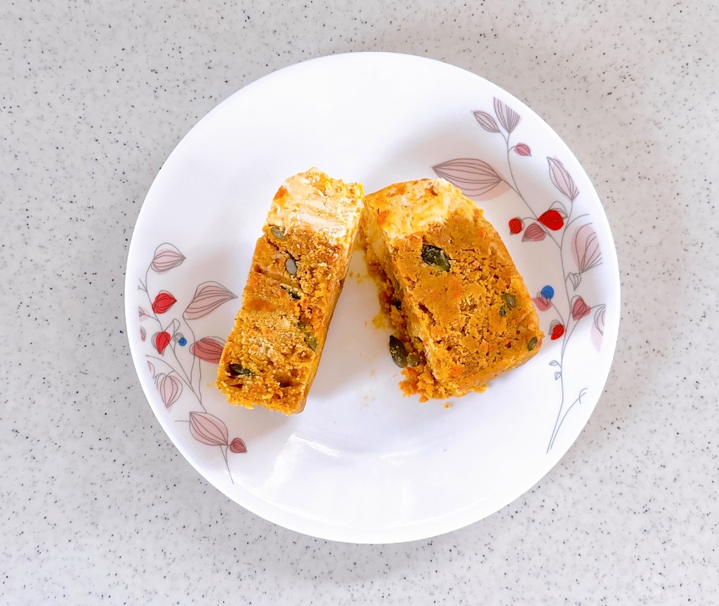 ▶国産無農薬かぼちゃを使った自家製かぼちゃペースト、有機パンプキンシード、シナモン」