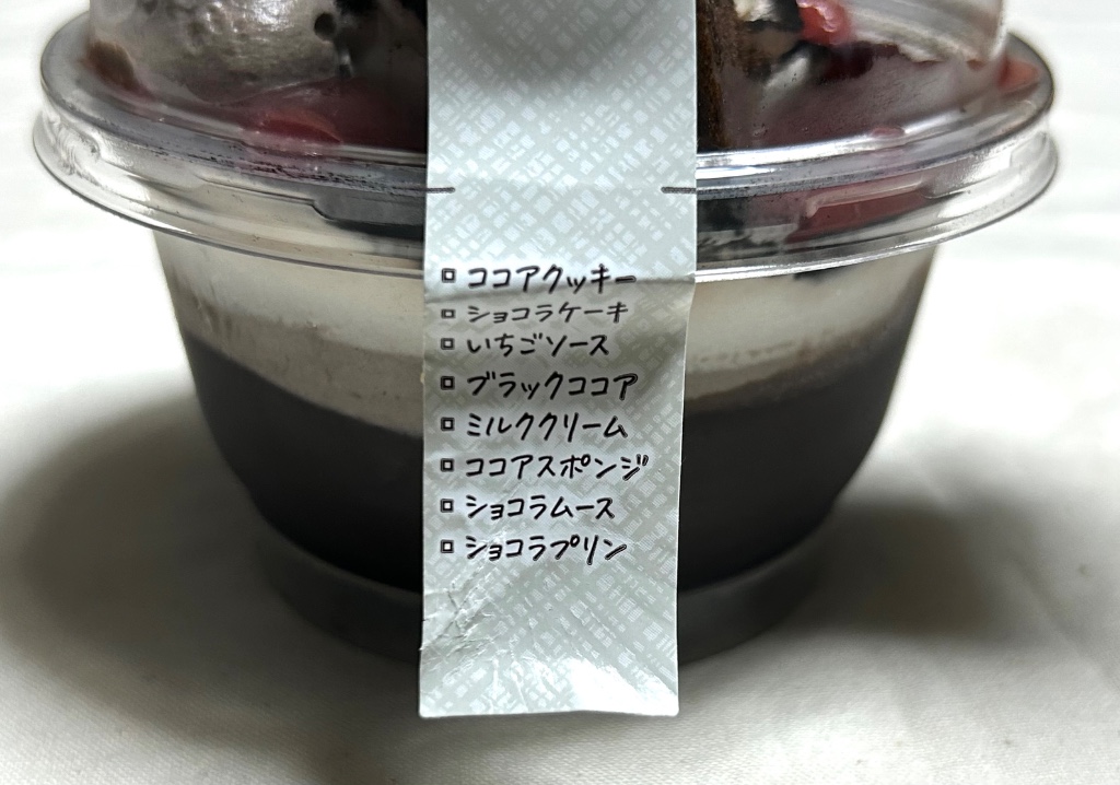 上からココアクッキー、ショコラケーキ、いちごソース、