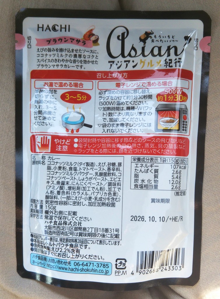 13時近くになってまだお昼を食べてなかったら、いくら小物を目的にDAISOに居たとしても 食品売り場に行っちゃうよね。 ハチ食品のレトルトカレー世界シリーズは3種類ありました。 他は、グリーンカレーとスリランカ風カレー。 迷った末に、クリーミーな海老味に決定!... 続きを読む