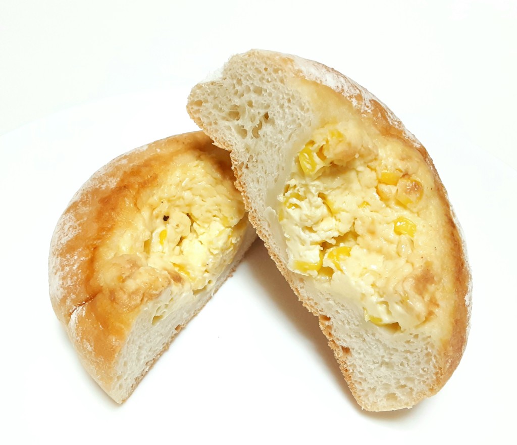 薄いパン生地にのったよくあるコーンマヨパンがお好きな方は、こちらはパン生地の分量多いなーと感じるかも💦笑