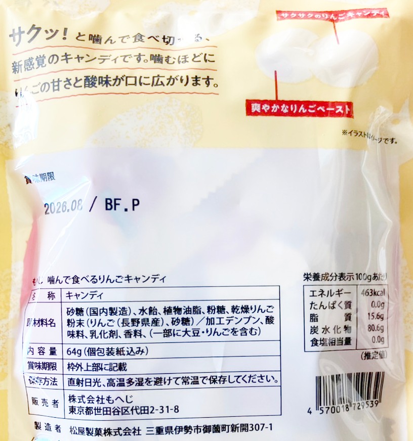 もぐナビホームへ > もへじ > もへじ 噛んで食べるりんごキャンディ