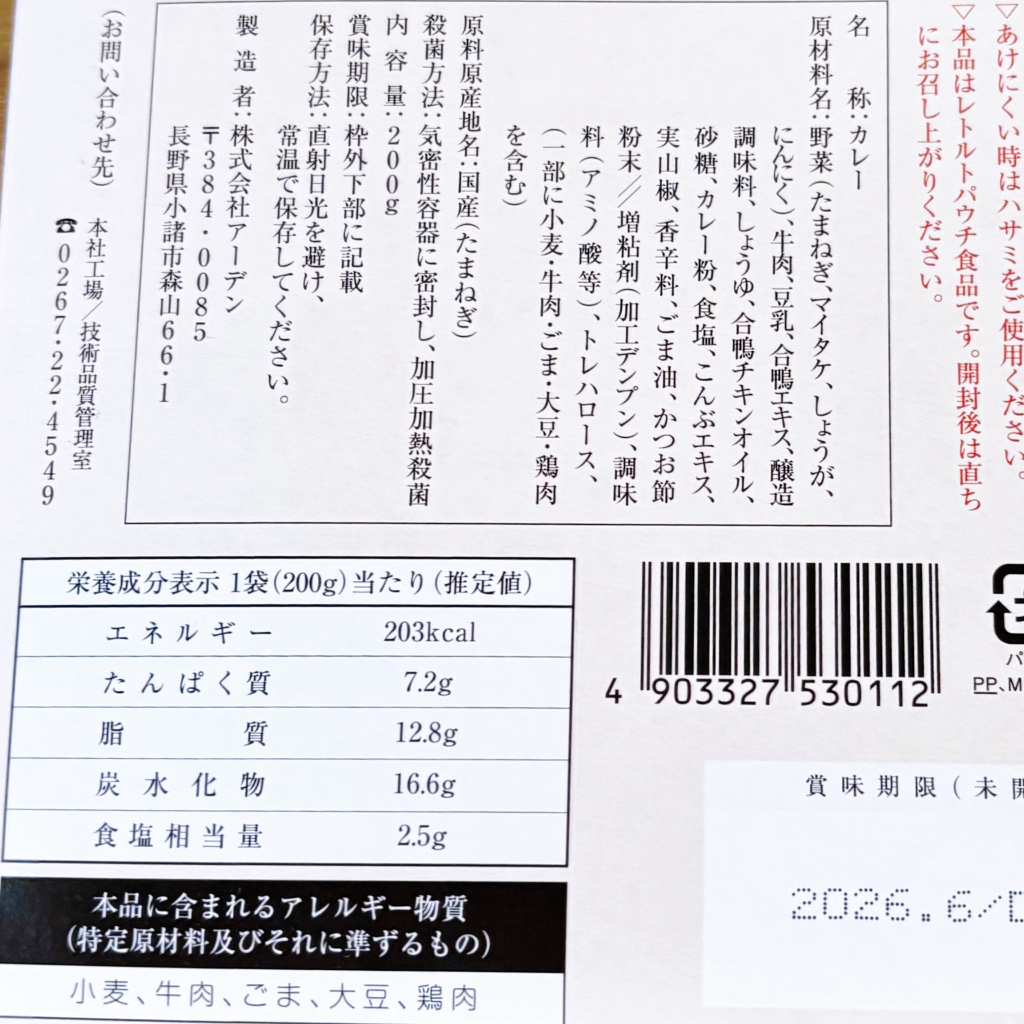 もぐナビホームへ > アーデン > アーデン 京都雲月 山椒が薫るカレー 中辛