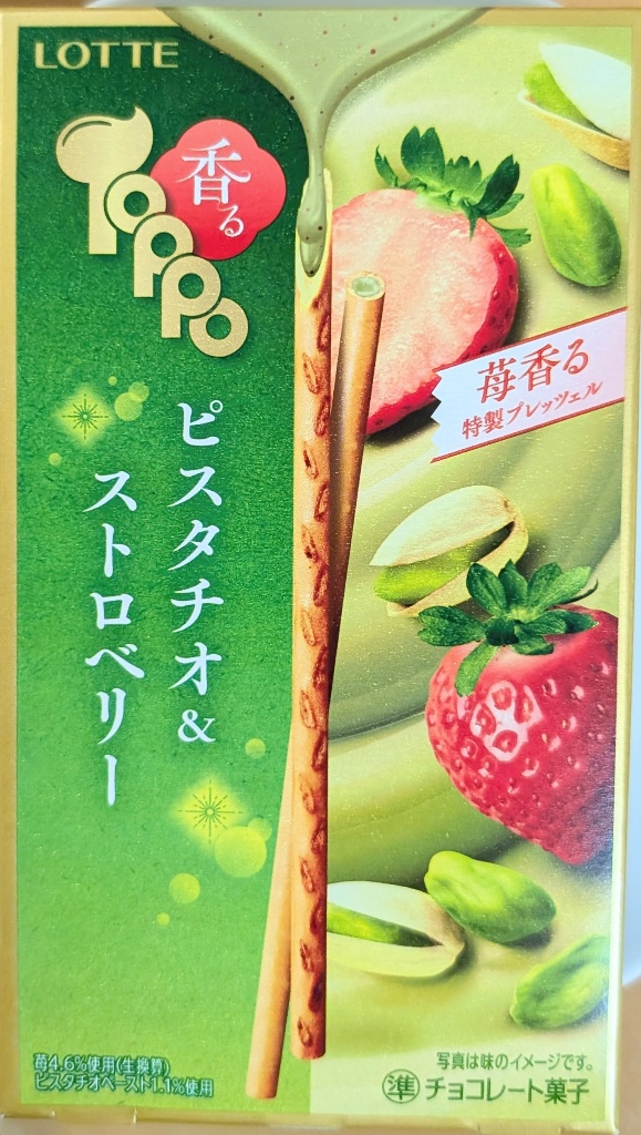 ロッテ 香るトッポ ピスタチオ&ストロベリー。気になっていたこの新商品。さっそく安くなっていたので、購入しました。