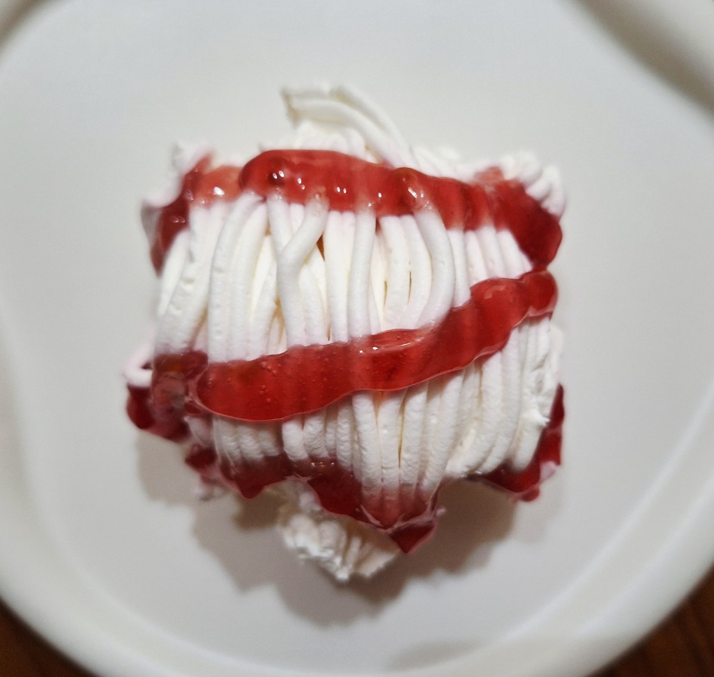 真っ白なモンブランにいちごソースがかかっていて可愛いです