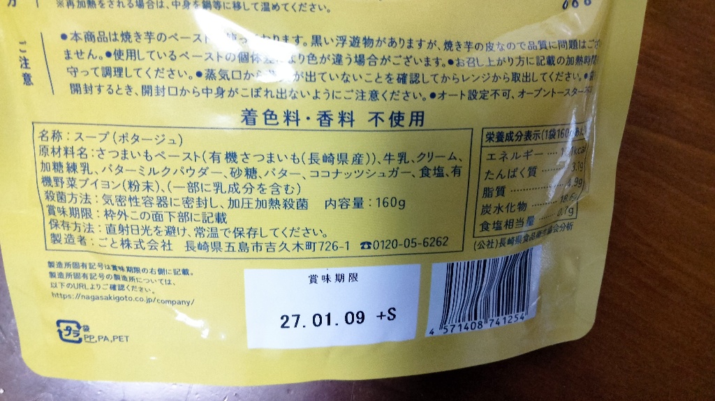 香りから焼き芋🍠の甘さを感じる通り甘くてね…でも牛乳、クリーム、加糖練乳、バターミルクP、砂糖、バター、🥥Sugarって甘いモノばっかりだもの当然甘いのか…あと食塩、有機野菜ブイヨン無添加嬉しい脂質は4.9g🍼クリーム系多くても焼き芋よりHealthy... 続きを読む