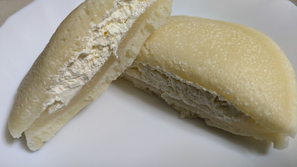 フィリングのバニラ風味ホイップクリームはほんのりミルキー、ほどよいコクと甘さで、パンケーキの中にたっぷりと詰まっています。確かに味わいが雪見だいふくっぽいかも💭... 続きを読む