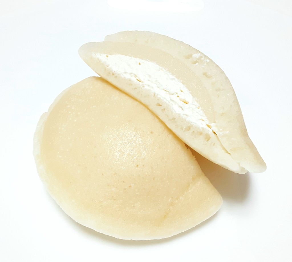 優しい甘さの白いパンケーキ生地はもっちりむっちり。