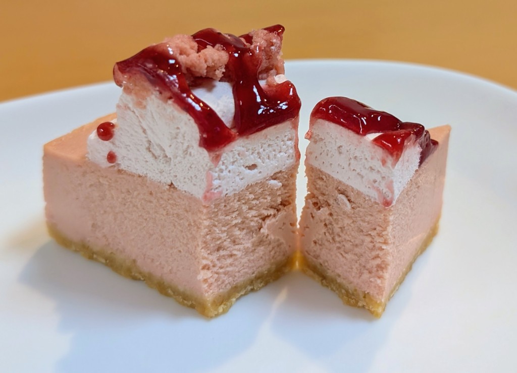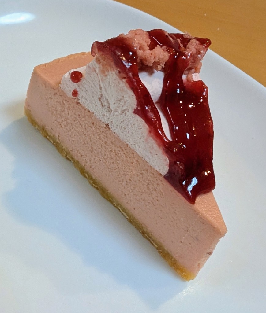 ストロベリーチーズケーキはねっとりなめらか、いちご風味で程よい甘味と酸味のある濃厚なコクのあるチーズケーキ🧀