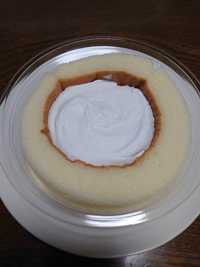 味は、やっぱり違う!と感じるつもりで頂いたのですが・・・あら? 勿論同じではないですが、程良い軽さのホイップクリームも色白スポンジもシンプル2要素構成品としては全く遜色ないお味。個人的には本品の方が好みかも知れない、なんて感じました。仮にプレミアムロールケーキが本品と同じボリュームだと、クリームに若干癖があるのと、スポンジがそこまで口当たり良くないのとで完食手前で飽きるかも。