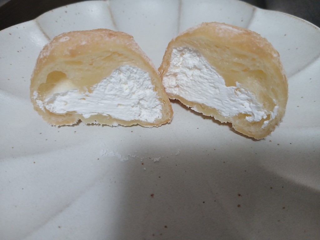 もっちりしていて、心地よい噛み応えでしたが、商品に個体差があるのか私の食べたものは、噛むと油が染み出てきてミルクホイップが油と混じり、甘さや濃厚なミルク感を楽しむことができなかったのが残念です